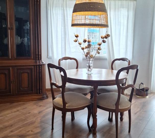 Cuarto piso con puerta blindada y calefacción central incluida en el precio. Dispone de tres dormitorios exteriores, un baño completo, un aseo, cocina totalmente equipada y un amplio salón-comedor muy luminoso. Posibilidad de plaza de garaje (precio a convenir).