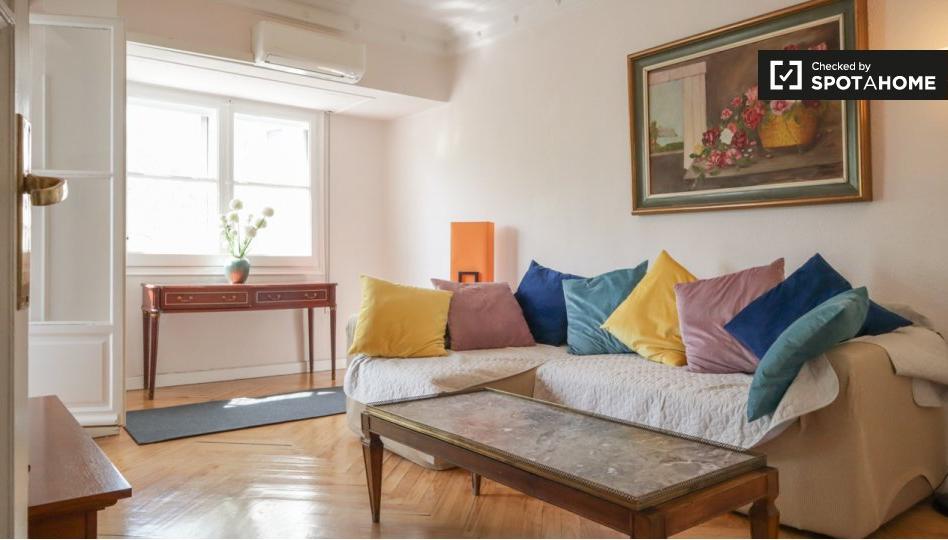 Bienvenido a este espacioso apartamento de 4 dormitorios ubicado en el dinámico barrio de El Viso, Madrid. La propiedad es exterior y se entrega completamente amueblada, lo que garantiza una experiencia de vida cómoda. La cocina está equipada con electrodomésticos modernos, incluyendo lavavajillas y horno, para su comodidad. La refrigeración se realiza mediante unidades individuales, la calefacción es central en todo el edificio y el apartamento también cuenta con un balcón para disfrutar del aire fresco. Se permite fumar dentro de la propiedad. Cabe destacar que este apartamento ha sido verificado personalmente por Spotahome, lo que garantiza que cumple con los más altos estándares de calidad.