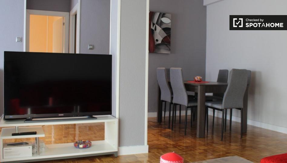 Este moderno apartamento de 3 dormitorios y 1 baño tiene una generosa huella de 98 m² en el Paseo de Extremadura en Casa de Campo. 2 de las habitaciones tienen camas individuales, mientras que una tiene una cama doble. La cocina está bien equipada con electrodomésticos modernos, que incluyen un refrigerador de tamaño completo y todo lo que necesita para cocinar.