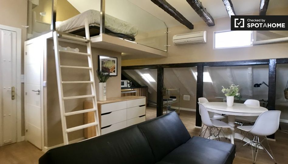 Estudio exclusivo ubicado en el sexto piso del barrio de Trafalgar en un edificio SIN ascensor, con cocina moderna y una decoración interior increíble. Cuenta con una acogedora sala de estar y un área de dormitorio tipo loft. Perfecto para una pareja o inquilino soltero.