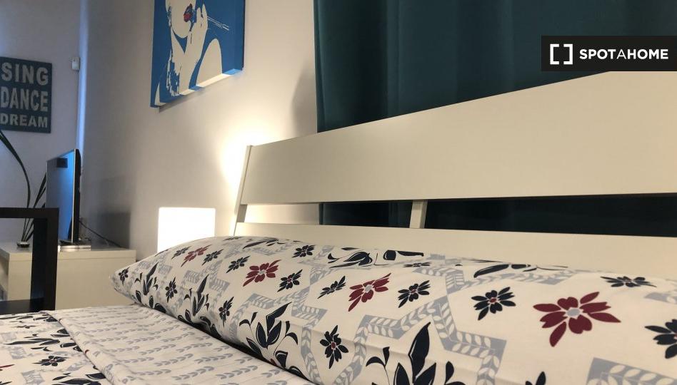 Este acogedor estudio en San Andrés, Madrid, está completamente amueblado e incluye comodidades como balcón, aire acondicionado individual, calefacción eléctrica y cocina equipada con lavavajillas. Se permite fumar y se admiten mascotas. El wifi está incluido en el precio. La propiedad ha sido revisada por Spotahome, lo que garantiza su autenticidad y calidad.