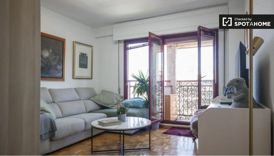 Descubra este acogedor apartamento de 1 dormitorio en Peñagrande, Madrid. Este apartamento amueblado está equipado con comodidades modernas, como aire acondicionado individual y lavadora. El apartamento cuenta con un encantador balcón para mayor espacio al aire libre y el edificio cuenta con ascensor para mayor comodidad. Se admiten mascotas y se permite fumar dentro de la propiedad. Spotahome ha verificado personalmente esta propiedad para su tranquilidad. El apartamento se encuentra en el barrio de Peñagrande, con prácticos puntos de interés en las inmediaciones. Encontrará el supermercado para sus compras diarias y el mural \"Fábulas del Viento\" de Taquen, una atracción turística cercana. Varios restaurantes, como Silos Restaurante y Pizzería Nature, también se encuentran a poca distancia, ofreciendo una variedad de sabores para todos los gustos.