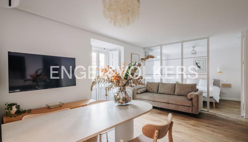 ENGEL & VÖLKERS presenta este exclusivo y luminoso piso de diseño recientemente reformado con calidades de lujo, ubicado en una de las calles más tranquilas y codiciadas del barrio de Universidad, en pleno distrito Centro. La propiedad, de 63 m² construidos, 56m2 útiles, destaca por un concepto de vida moderno y funcional que integra una cocina de alta gama totalmente equipada con electrodomésticos de última generación —incluyendo lavavajillas y menaje completo— a un sofisticado salón-comedor exterior con tres balcones que inundan la estancia de luz natural. El dormitorio doble, independiente y con gran capacidad de almacenamiento gracias a sus armarios empotrados, se complementa con un baño renovado que incorpora una práctica zona de lavandería con lavadora-secadora. Con suelos de madera noble, climatización mediante splits de aire acondicionado y bomba de calor en todas las estancias, y situado en una finca accesible con ascensor, esta vivienda se entrega totalmente amueblada y lista para entrar a vivir, ofreciendo una oportunidad inigualable tanto para profesionales como para estudiantes que busquen la máxima distinción y confort en el corazón de Madrid.