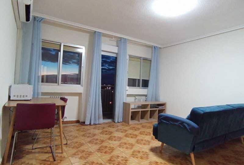 Globalpiso Entrevías alquila Estupendo piso en Entrevías situado en una séptima planta (de diez) de 94 m2 construidos. El piso se distribuye en hall de entrada, espacioso salón comedor con salida a terraza, con magníficas vistas y orientación al suroeste de Madrid, A/A, ventanas dobles aluminio, amplia cocina con terraza tendedero y zona de almacenaje, tres dormitorios con armarios empotrados y un cuarto de baño con ventana al exterior. El edificio tiene acceso a minusválidos, dos ascensores y calefacción central. Muy bien situado a escasos metros de estupendo parque y zona de aparcamiento, a diez minutos en coche de accesos a M30 y M40, próxima parada de autobús y a diez minutos andando de Cercanías Renfe Entrevías y a 5 del centro deportivo, piscina municipal, colegios, comercios y restauración.