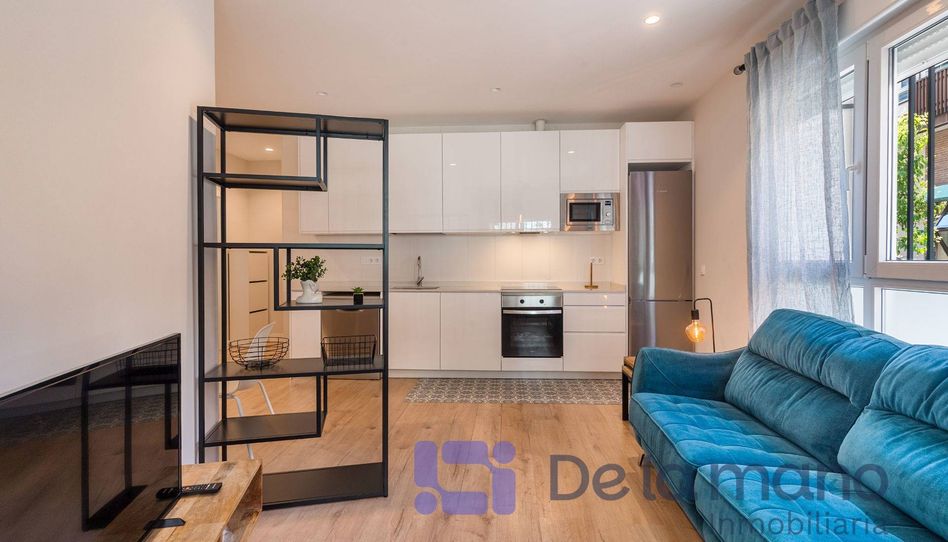 Inmobiliaria DE LA MANO alquila este local reconvertido en vivienda en la confluencia de dos tranquilas calles del barrio de Ciudad Jardín, dentro del distrito Chamartín de Madrid. Podría parecer que vivir a pie de calle en Madrid es un hándicap, pero en este caso nos encontramos ante una vivienda situada en un entorno residencial consolidado y tranquilo, haciendo esquina y con varias ventanas que le aportan gran iluminación natural y ventilación, con bastantes metros cuadrados útiles, con la privacidad e independencia del acceso privado desde la calle y, lo que es más importante, con una reforma integral de calidad y un equipamiento moderno y atractivo. Resulta ideal para parejas o dos profesionales amigos que quieran compartir piso y disfrutar de un barrio lleno de servicios y comercios de proximidad, con excelentes comunicaciones en transporte público y a sólo un paseo del barrio Salamanca.