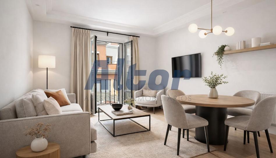 El salón-comedor, amueblado con un gusto exquisito, cuenta con un balcón que da a la emblemática calle de Hortaleza.