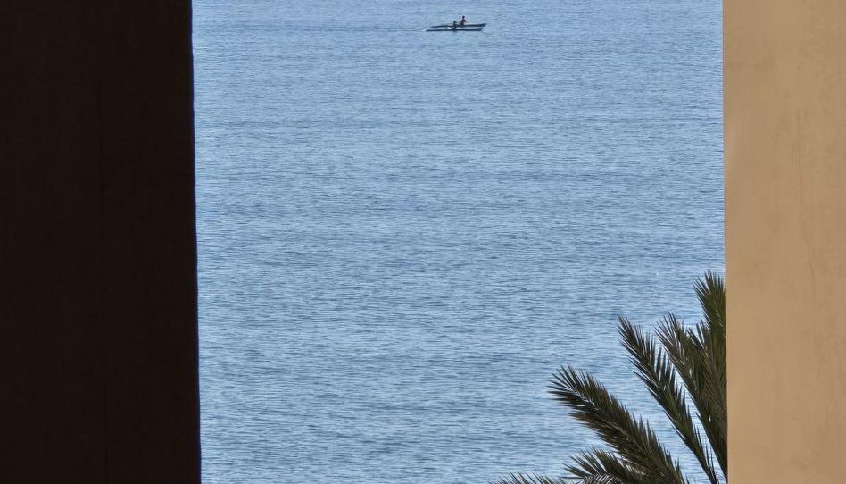 Vivienda de dos dormitorios ubicada en la Malagueta, tiene un cuarto de baño completo, cocina independiente (equipada con electrodomésticos), salón comedor desde el que se puede ver el mar entre edificios.