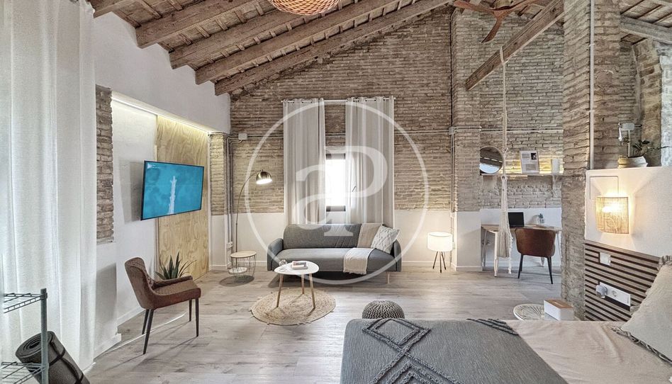 aProperties presenta este loft en planta alta, con techos de más de 4 metros que aportan una gran sensación de amplitud y luminosidad. La vivienda está completamente amueblada y equipada, lista para entrar a vivir.