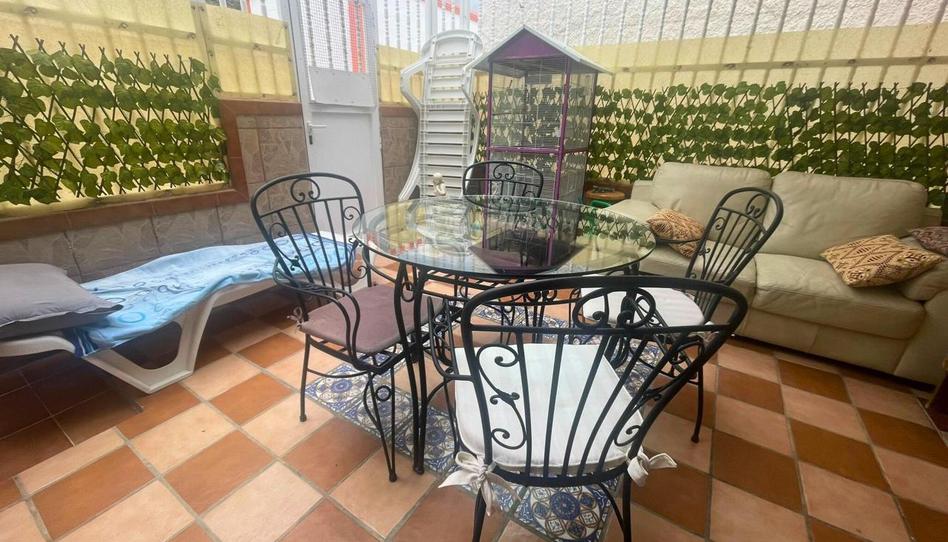 Planta baja: Se accede a la vivienda a través de una soleada terraza equipada con muebles de jardín, una tumbona y una práctica ducha exterior, ideal para refrescarse en los días calurosos. Desde allí se entra a un amplio y luminoso salón con grandes ventanales que comunican con la terraza, amueblado con piezas de madera, dos cómodos sofás y un televisor de gran tamaño.