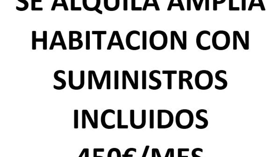 Amplia habitación, se comparte salón, cocina y baño con otro inquilino. Espacios limpios y cuidados. No se admiten mascotas. Para una persona. suministros incluidos en el precio.