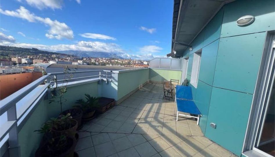 Ático reformado suprimida una habitación ampliandose a EstarCocina. Salón y dos Habitaciones, la principal suite con vestidor y baño completo, 74m2 utiles. Terraza 54m2 provista de toldo. Todo exterior. Salida de las estancias a terraza, con vistas totalmente despejadas al Aramo, Naranco y todo Oviedo. Zona muy tranquila Centros Comerciales y Ocio, Zonas verdes, cercano al Huca.