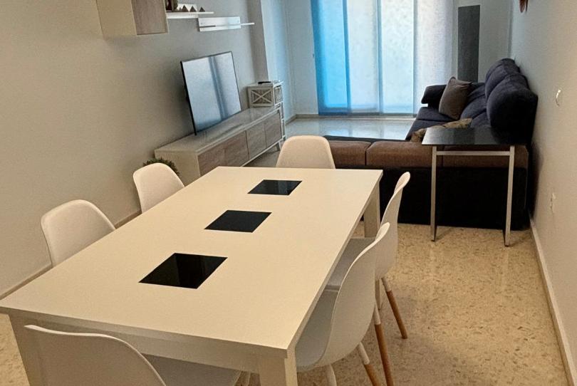 Se distribuye en un amplio salón-comedor con acceso a balcón, cocina independiente totalmente equipada con electrodomésticos, tres dormitorios con armarios empotrados y dos baños completos.