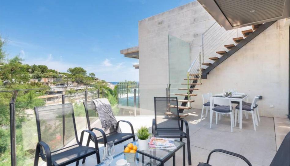Este apartamento cuenta con una excelente ubicación con vista al mar y a las montañas de la Serra de Tramuntanta que se disfrutan desde su jardín abierto y la maravillosa terraza con vistas al mar. En la terraza dispone de sofás y sillas de exterior, además de un comedor de exterior con fabulosas vistas a la playa.