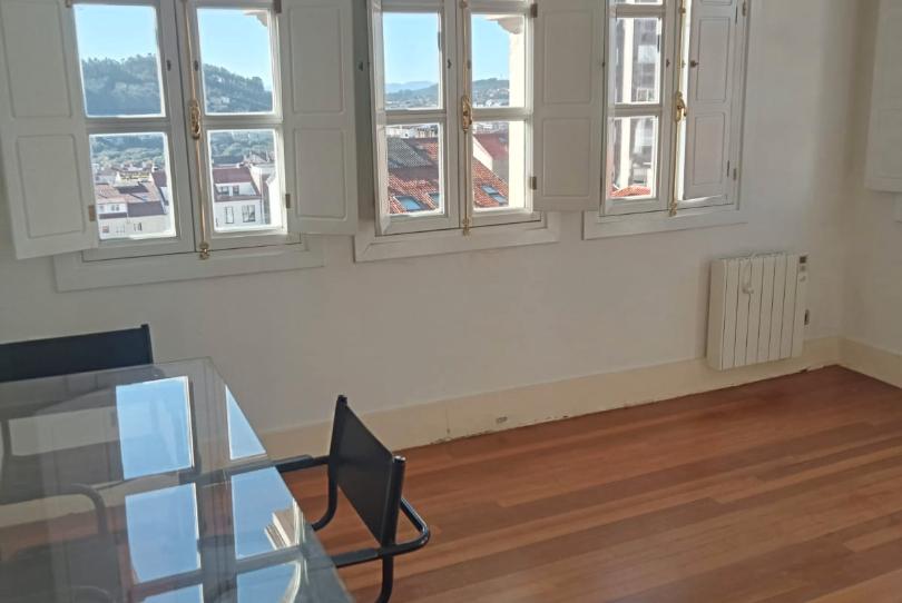 Si buscas un piso con luz natural, quizá este sea tu piso. Se trata de una vivienda situada en planta 4ª con ascensor, con orientación este y sur, por lo que recibe luz natural gran parte del día. Entramos en un amplio salón-comedor con seis ventanas y vistas a Cidade da Cultura, pasamos a una cocina moderna totalmente amueblada (vitrocerámica, lavadora, nevera, microondas) y terminamos en un dormitorio con cama de 135 cm y baño interior con plato de ducha. La vivienda posee suelos de madera, ventanas de madera con cristal con cámara tipo climalit, calefacción mediante radiadores eléctricos de bajo consumo, ... Cuota de comunidad incluida. Ref 1386 www.apostolinmobiliaria.com