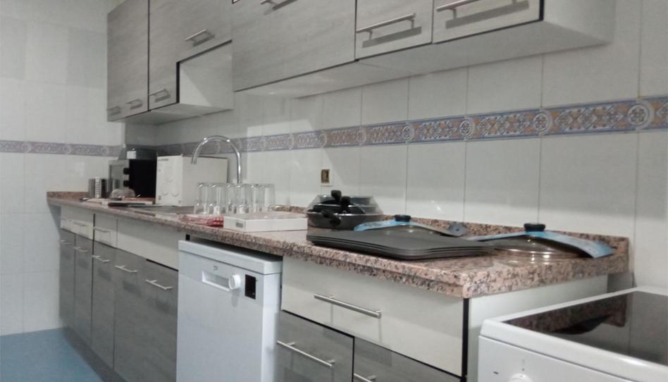 La cocina está equipada con los siguientes electrodomésticos: lavavajillas, horno, vitrocerámica, frigorífico combi, lavadora de 7 kg de carga frontal, microondas y termo eléctrico para a. c. s.