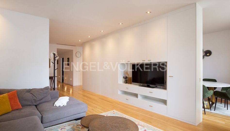 CORTA ESTANCIA 6 A 11 MESES. Este piso de diseño, que se alquila de 6 a 11 meses en el Mercat Central, es la vivienda ideal para una persona sola, una pareja, o una familia que desee pasar una temporada o establecerse en la ciudad de Valencia. Subimos a planta por ascensor o por las escaleras ya que se trata de una alta primera planta. A la entrada un amplio recibidor distribuye el apartamento que se distingue por el aprovechamiento del espacio y de la luz de ventanales interiores y exteriores. La zona de día se sitúa a la derecha del hall con un confortable salón con muebles de diseño que da a un ventanal con balconcito minimalista; y de frente la cocina y comedor igualmente de diseño contemporáneo y equipados con las últimas líneas de electrodomésticos y también da a un ventanal y a un patio interior de uso exclusivo muy agradable. La zona de noche se integra con tres dormitorios, uno principal, y dos cuartos de baños, uno en suite. Hay aire acondicionado que proporciona frío y calor a todo el piso por conductos. No dude en visitarlo. Estaremos encantados de atenderle.