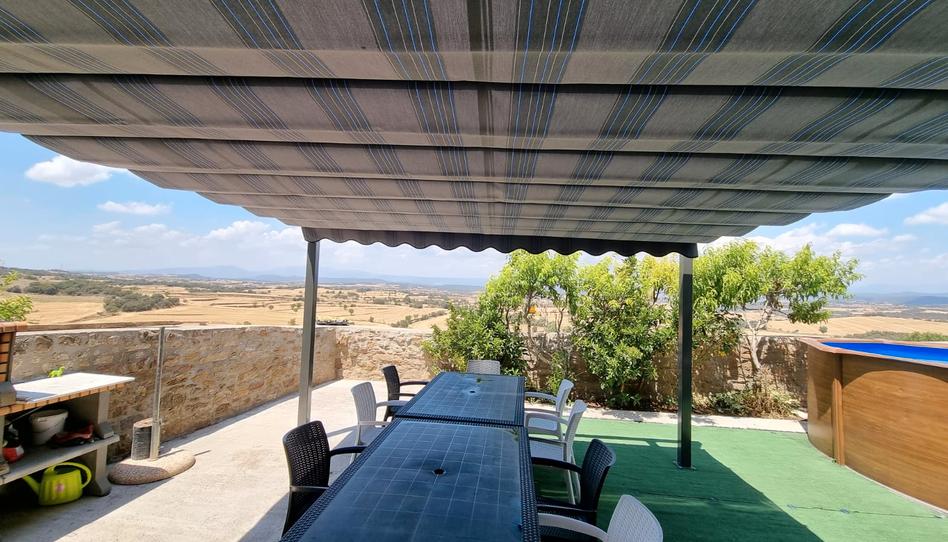Casa de planta baja distribuida en 2 dormitorios, 1 baño, cocina americana, salón con estufa de pellet y salida a una gran terraza exterior con posibilidad de poner una piscina, actualmente hay una en deshuso. La cocina se encuentra toda equipada.