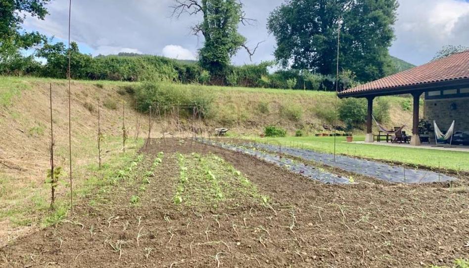 Tiene un terreno de 3000 m2, con frutales (cerezos, manzanos y perales de varias clases, higuera, avellanos, membrillo, ...), jardín y zona con posibilidad de destinarla a huerto.
