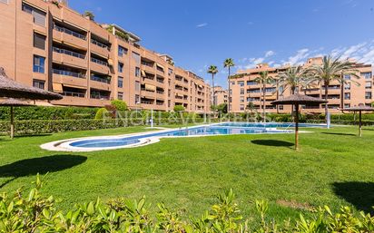 Engel&Völkers presenta esta espectacular propiedad en uno de los residenciales mas codiciados de Valencia. El piso comienza con su recibidor que nos da acceso al espacioso salón comedor con un espectacular balcón con vistas al residencial y con bonitos muebles nuevos. Justo al otro lado encontramos la cocina totalmente equipada con electrodomésticos de gran calidad. En cuanto a la zona de noche se caracteriza por el gran espacio de sus 3 dormitorios con armarios empotrados, una luz espectacular y caracterizadas por su silencio. En cuanto a los cuartos de baño, uno se ubica en suite en el dormitorio principal y el otro cerca de los otros dos dormitorios. En cuanto a las calidades el piso esta dotado de aire acondicionado por conductos frio calor en todas las estancias, radiadores de gas, osmosis y descalcificador para un agua de excelente calidad, domótica, suelos de parquet y carpintería de calidad. Además incluye una plaza de parking en el mismo residencial con cargador electrico. El residencial dispone de piscina, zonas ajardinadas perfectamente mantenidas, parque infantil y conserje 24h. Para mas información no dudes en consultarnos, estaremos encantados de atenderte. La vivienda se encuentra ubicada en un complejo residencial con portero 24h. La zona está dotada de todo tipo de infraestructuras y servicios, tales como colegios, metro, ocio, restauración y tiendas. También se encuentran muy próximas las Avenidas General Avilés y Maestro Rodrigo, dos de los principales ejes que vertebran el barrio de Campanar. El edificio se encuentra rodeado de otros de similares características, aportando a la zona un carácter residencial. La conexión con la Ronda Norte también es inmediata, lo que supone una rápida salida hacia cualquier dirección. Es un entorno ideal para disfrutar de la tranquilidad que proporciona el complejo residencial, y a la vez la proximidad a entornos urbanos fuertemente consolidados.