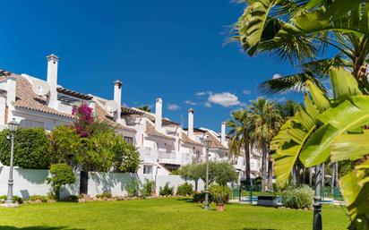 Adosada recientemente reformada con mucho encanto en urbanización Los Naranjos con excelente ubicación a un paso de la playa y Puerto Banús y todo tipo de servicios. La propiedad tiene 3 plantas. Planta Baja abierta, espaciosa y muy luminosa con un gran salón dividido en dos ambientes y una cocina moderna de concepto abierto. En esta misma planta hay un cuarto de lavado y plancha y un aseo de cortesía. Desde el salón se accede a un amplio porche con comedor de verano para disfrutar de veladas inolvidables contemplando la vegetación mediterránea de la urbanización y las vistas a la montaña . Acceso directo al jardín y piscina comunitaria. Tres amplios dormitorios y 2 baños en planta segunda. Dormitorio principal en suite. 2 dormitorios tienen acceso a 2 terrazas muy agradables. En la última planta hay otro dormitorio (podría ser utilizado como despacho, sala de juegos o sala polivalente) y otro baño además de un útil trastero así como otra terraza con vistas increíbles.