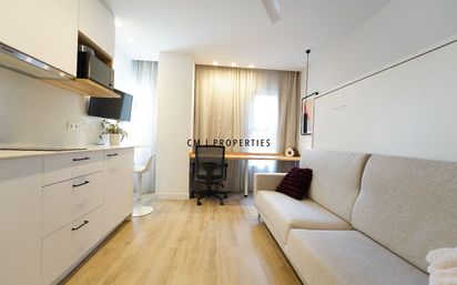 CM Properties presenta este acogedor y moderno estudio, diseñado con un estilo cálido y contemporáneo que invita a disfrutar de cada rincón. Al entrar, te recibe un espacio diáfano y luminoso, donde los amplios ventanales permiten la entrada de luz natural durante todo el día, creando una atmósfera relajante y elegante. Los suelos y el mobiliario en tonos neutros aportan armonía, mientras que los detalles decorativos y las mesas de diseño completan un ambiente sofisticado y confortable. La zona de descanso se integra de manera equilibrada en el conjunto, ofreciendo un espacio sereno y acogedor, tipo hotel boutique. La cama, vestida con textiles de calidad, convive de forma fluida con la zona de estar, manteniendo una distribución práctica y visualmente agradable. La cocina, de estilo minimalista y totalmente integrada, destaca por su funcionalidad. Equipada con armarios de líneas limpias y una encimera práctica, aprovecha al máximo cada metro. Además, el estudio dispone de un cómodo rincón de trabajo, perfecto para quienes necesitan un entorno tranquilo y ordenado para teletrabajar. En conjunto, esta vivienda se presenta como una opción perfecta para quienes buscan diseño, comodidad y un espacio listo para entrar a vivir, con acabados de alta calidad y una atmósfera equilibrada y moderna. Si este estudio encaja con lo que buscas, no dudes en contactarnos y pedir una visita.