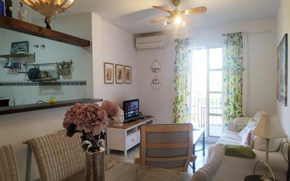 ALQUILER DE PISO CON PISCINA. Se alquila bonito piso en zona del Espíritu Santo, con jardines comunitarios y junto a la playa. Terraza de 7 metros y con capacidad para 5 personas. Aire acondicionado en salón y dormitorio principal. Mosquiteras en todas las ventanas.
