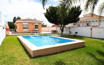 Precioso Chalet disponible para alquiler de larga temporada y temporada escolar en la zona de los Gallos, en Chiclana de la Fra., Cádiz. La parcela bien cuidada, con 500 m2 aprox, dispone de una entrada para vehículos y otra peatonal, con plaza para un vehículo, una gran zona ajardinada y una amplia piscina con zona de barbacoa. Es un luminoso y coqueto Chalet en una planta con 110m2 construidos aprox., dispone de 3 bonitos y amplios dormitorios, con armarios empotrados, 1 baño completo muy espacioso con bañera y otro con placa de ducha. Ademas encontrará un encantador y luminoso salón con chimenea y una luminosa cocina con salida al exterior. Además, esta propiedad se encuentra ubicada en una localización privilegiada, a escasos 5 minutos en coche de nuestra galardonada playa de la Barrosa y cercano a todo tipo de servicios (supermercados, restaurantes, centro médico, guarderías, etc). No se admiten mascotas. Se precisa solvencia demostrable. Grupo Inmobiliario American House una Agencia de prestigio en la zona. Tenemos la Casa de Tus Sueños Junto al Mar y el Golf. We speak english, Мы говорим по русски, nous parlons français, wir sprechen Deutsch. Encuentra más en www.americanhouse.es Se pone en conocimiento de nuestros clientes que en el precio reflejado en el anuncio no están incluidos los gastos inherentes del alquiler, tales como , los honorarios de la Agencia y los meses de fianza y otros.