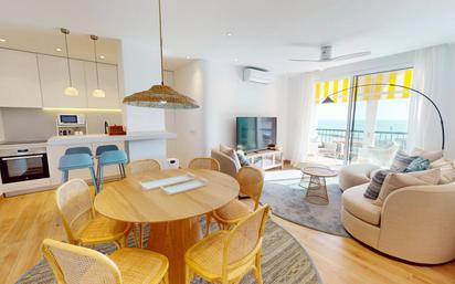 Piso en alquiler de temporada de tres dormitorios en primera línea de playa en Fuengirola, con 3 habitaciones y terraza con espectaculares vistas al mar. Alquiler de temporada de invierno de SEPTIEMBRE A JUNIO o vacaciones de verano. Situado en la cuarta planta de un emblemático edificio con zona comunitaria con piscina. Se alquila amueblado y completamente equipado. Dispone de un salón comedor con salida a una gran terraza con orientación Suroeste y unas espectaculares vistas al mar. Cocina americana totalmente equipada con nevera, lavadora, lavavajillas, etc. Cuenta con 3 habitaciones dos dobles y una individual todas con armarios. Hay 2 baños completos con ducha, uno de ellos en suite. Carpinterías de aluminio y persianas motorizadas. Te gustará especialmente por: Su gran terraza con espectaculares vistas al mar. Zona muy tranquila. Piso muy luminoso. Zona comunitaria con piscina. Ubicado en la playa de Torreblanca, junto alguno de los mejores chiringuitos de Fuengirola; equipamientos deportivos, zona de paddle surf, zona con equipos biosaludables, zona de calistenia y zona infantil.