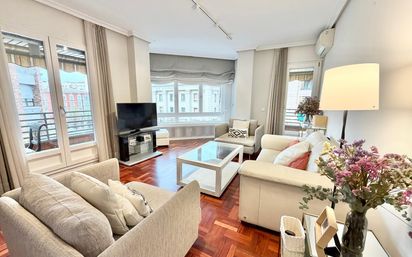 Descubre este espectacular piso en pleno corazón de Logroño, ubicado junto al Espolón, una de las zonas más emblemáticas y codiciadas de la ciudad. Una vivienda única que combina amplitud, luz y confort en cada uno de sus espacios. Nada más entrar, te recibe un amplio hall que marca el carácter elegante de la vivienda y distribuye de forma cómoda el acceso a las distintas estancias. El salón, situado en esquina, es sin duda una de las joyas del piso: extraordinariamente grande, con una luminosidad excepcional gracias a sus ventanales, creando un ambiente cálido y acogedor ideal tanto para el día a día como para recibir invitados. La cocina, amplia y completamente equipada, ofrece todo lo necesario para disfrutarla al máximo, e incluye además una práctica galería que aporta funcionalidad extra. La vivienda dispone de tres habitaciones adicionales, todas ellas de generosas dimensiones, perfectas para adaptarse a cualquier necesidad, ya sea como dormitorios, despacho o zona de estudio. Cuenta también con dos baños completos, cómodos y bien distribuidos. El piso se alquila sin amueblar, lo que permite adaptarlo completamente a tu estilo y necesidades. Se mantienen la cocina equipada, los baños y las camas, quedando el resto de la vivienda libre para que puedas personalizarla a tu gusto. En conjunto, se trata de una vivienda preciosa, muy luminosa y con una distribución excelente, situada en una ubicación privilegiada, ideal para quienes buscan vivir con todas las comodidades en el centro de la ciudad. Una oportunidad única que no puedes dejar escapar.