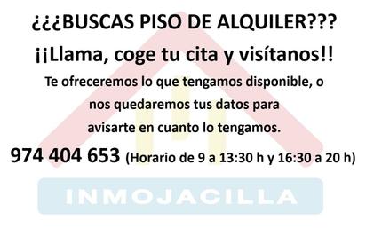BUSCAS PISO EN ALQUILER?? Desde INMOJACILLA te ofrecemos que nos visites, te ofreceremos aquello que tengamos disponible y se adapte a tus necesidades y, en caso de no tenerlo, guardarnos tus datos para avisarte cuando dispongamos. [IW]