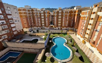 Vivienda en residencial con piscina en primera fase del Bulevar. Dispone de dos habitaciones, un baño, salón con acceso a terraza y cocina con lavadero. El precio incluye un amplio garaje en el mismo edificio. Tiene aire acondicionado por split con bomba frío y calor. Muy luminoso. Imprescindible tener nómina o acreditar solvencia a criterio del propietario. Contactar vía WhatsApp al 627021418. Comercializa en exclusiva Rafael Espejo Inmobiliaria.