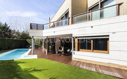 Magnífica casa unifamiliar a cuatro vientos, situada en una de las zonas más exclusivas de Sant Cugat. La casa se encuentra en una parcela plana de 583 m2 con vistas despejadas, y dispone de una piscina y un jardín cuidadosamente diseñados. Además, la casa está totalmente amueblada y equipada con electrodomésticos de alta calidad. Al acceder a la casa, nos recibe un amplio hall con armarios empotrados en color claro, que contrastan con el elegante parquet en color coñac. A continuación, entramos en el salón con una acogedora chimenea, suelo porcelánico y unos grandes ventanales, que nos permiten disfrutar de la vista y el acceso a la zona exterior. El salón tiene una superficie de 60 m² y se comunica con un porche de madera de teka, ideal para relajarse o comer al aire libre. La cocina es semiabierta, decorada en color claro, creando una sensación de amplitud y limpieza, está totalmente equipada con electrodomésticos de alta calidad y tiene una isla central que facilita el trabajo y la organización. En esta planta también encontramos una habitación en suite y un baño de cortesía. La segunda planta se ubica la zona de noche, compuesta por cuatro habitaciones y tres baños. La habitación principal es una suite con vestidor y baño con plato de ducha. Dos habitaciones son dobles y comparten baño, otra más en suite con baño plato de ducha. Todas las habitaciones son exteriores y tienen salida a una terraza con vistas. cuenta con una zona semisótano, donde encontramos una amplia zona polivalente, más una habitación de cortesía y un baño completo, zona de lavado independiente y el parking para tres coches. Acabados de alta calidad, con domótica, aspiración centralizada, ascensor, puertas lacadas en color claro, calefacción radial, aire acondicionado por conductos, persianas eléctricas, videoportero y vigilancia privada. Precio índice: no aplica, propiedad de más de 150m2 Propiedad Suntuaria Último contrato: Precio Contrato anterior Sant Cugat, combina la tranquilidad de un pueblo con la cercanía de una gran ciudad. Se comunica fácilmente por autopista, túneles o carretera. Muchas familias eligen Sant Cugat como su lugar de residencia, buscando una mayor calidad de vida y un entorno natural y cultural. Sant Cugat cuenta con numerosas zonas verdes, parques y jardines, donde se puede disfrutar del aire libre y de la naturaleza. Además, tiene una rica oferta cultural y gastronómica, con tradiciones y fiestas populares que conservan su esencia. También dispone de prestigiosas escuelas internacionales, que garantizan una educación de calidad y diversidad. Sant Cugat es, sin duda, un municipio ideal para vivir y trabajar, con todas las comodidades y servicios que se puedan desear