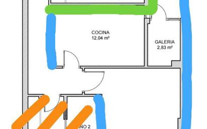 Se alquila derecho a zona de la casa(marcado en verde) con zonas compartidas como la cocina, el patio/galería, el salón/comedor y el balcón (marcado en azul). Si es para una sola persona son 450€ con servicios incluidos, y si son dos personas 500€. Si el inquilino desea, puede utilizar uno de los cuartos para otro uso, por eso mismo no lo he terminado de amueblar.