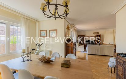 Descripción del Inmueble Presentamos este magnífico chalet pareado situado en El Caño-Maracaibo, la zona residencial más cotizada del centro de Las Rozas de Madrid. La vivienda destaca por su maginifica distribución en tres plantas, estancias de generosas dimensiones y una ubicación privilegiada que combina serenidad con la cercanía a todos los servicios. Distribución por Plantas: Planta Principal (Vida Social y Confort): Al entrar, un elegante recibidor nos da la bienvenida. La cocina office es totalmente independiente, completa y cuenta con un práctico tendedero. El salón-comedor es el gran protagonista, inundado de luz natural y con salida directa a una terraza ideal para disfrutar del aire libre. Esta planta se completa con una habitación adicional, perfecta como despacho profesional o sala de estar íntima. Primera Planta (Zona de Descanso Familiar): Subiendo, encontramos un distribuidor de gran amplitud que da acceso a 4 dormitorios. Destaca el diseño pensado para el confort: dos de las habitaciones cuentan con baño en suite, proporcionando privacidad y exclusividad. Las otras dos habitaciones comparten un tercer baño completo de servicio. Planta Semisótano (Ocio y Almacenaje): Un espacio versátil diseñado para el disfrute. Cuenta con un gran salón tipo bodega con zona de comedor para grandes reuniones y área de estar. Además, dispone de una despensa, un trastero de gran capacidad, una sexta habitación (ideal para servicio o invitados) y un garaje privado para dos vehículos. Cuenta con 8 placas solares de 500W instaladas recientemente con inversor monofásico de 4KW! Piscina privada Situado en una de las zonas más demandadas de Las Rozas – El Caño Maracaibo. Con todos los servicios a mano: supermercados, comercios, servicios, centros de salud, restaurantes y el casco antiguo, todo a pocos minutos a pie. Muy bien comunicado tanto por transporte público como por coche, con accesos rápidos a las principales vías de la zona m505, A6, M50.