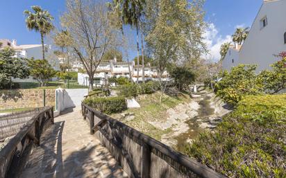 Chalet adosado en Urbanización El Capricho, en plena Milla de Oro de Marbella, a escasos cien metros del Pirulí. Cuenta con 190 m2 construidos repartidos en 3 plantas, con 4 dormitorios, 3 baños y 1 aseo, cocina independiente totalmente reformada y una amplia terraza con orientación sur y vistas despajadas a la urbanización y parciales al mar. Incluye plaza de aparcamiento. Ubicado en la mejor zona de Marbella, esta casa le ofrece la tranquilidad de vivir en una urbanización con amplias zonas verdes, sin ruidos ni molestias, pero con la gran ventaja de estar a minutos caminando de la playa, el Paseo Marítimo o la Plaza de Los Naranjos. En la zona dispone de todo tipo de servicios, supermercados, restaurantes, colegios, institutos, polideportivo y transporte publico. Urbanización cerrada y habitada todo el año con impresionantes zonas comunes de casi 50.000 m2 con abundancia de especies vegetales, zonas ajardinadas, paseos, piscina y zonas infantiles. Distribución: Planta baja: salón con chimenea, cocina totalmente reformada, aseo con ventana y salida a terraza con algunas vistas mar. Planta primera: dos dormitorios con armario empotrado, cuarto de baño completo y dormitorio principal con terraza, vistas al mar y baño en suite con ventana y vistas. Sótano: un espacio amplio multifuncional que puede adaptarse a diferentes necesidades y un baño.