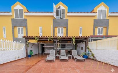 Chalet adosado en San Fernando – cuatro plantas, terraza, luz natural y espacio para toda la familia Se vende amplio y luminoso chalet adosado de 218 m² construidos y 194 m² útiles, sobre una parcela de 123 m², ubicado en la zona residencial de Vista Cumbre II, en San Fernando de Maspalomas. La vivienda está distribuida en cuatro plantas que ofrecen comodidad, funcionalidad y un estilo de vida familiar ideal. Una propiedad diseñada para disfrutar del espacio, la luz natural y la tranquilidad, sin renunciar a la cercanía de todos los servicios esenciales y la excelente conexión con el resto de la isla. Distribución de la vivienda Planta principal (60 m² construidos, 53 m² útiles): Acceso directo desde la calle a una gran terraza delantera de 50 m², con zona de solárium, comedor exterior bajo porche y espacio ideal para barbacoa o juegos infantiles. Interior: • Salón-comedor amplio y muy luminoso • Aseo de cortesía • Despensa o trastero • Cocina independiente en forma de U, totalmente equipada: vitrocerámica, campana, fregadero doble, lavavajillas, nevera combi y microondas • Patio trasero techado de 13 m², ideal como zona de lavandería y almacenaje Primera planta (60 m² construidos, 53 m² útiles): • Tres dormitorios dobles, todos con aire acondicionado • Uno con baño en suite y armario empotrado • Segundo baño completo con plato de ducha Segunda planta – Buhardilla (37 m² construidos, 36 m² útiles): • Dos habitaciones dobles, ambas con aire acondicionado • Una con baño en suite con bañera • Estancias luminosas, perfectas como dormitorios, despacho o sala de lectura Sótano (61 m² construidos, 51 m² útiles): • Segundo salón polivalente: juegos, oficina, gimnasio o cine en casa • Habitación adicional con escritorio y armario • Bodega acogedora con mesa de madera Características destacadas • Parcela: 123 m² • 218 m² construidos / 194 m² útiles • Terraza delantera: 50 m² • Patio trasero techado: 13 m² • 5 habitaciones + salón + segundo salón + bodega + trastero • Aire acondicionado en todas las habitaciones principales • Gran luminosidad en todas las plantas • Fácil aparcamiento en la calle • Adosada solo por un lateral: más tranquilidad y privacidad Ubicación excelente en San Fernando Ubicada en una zona residencial consolidada y tranquila, con todos los servicios a pocos minutos caminando. San Fernando es ideal para familias, con colegios, centros deportivos, zonas infantiles, supermercados y restauración a su alrededor. Distancias clave: • Supermercados, farmacias, colegios y zonas deportivas: menos de 5 minutos a pie • Parques infantiles: 2-3 minutos caminando • Centro comercial Yumbo: 5 minutos en coche • Playa del Inglés y Dunas de Maspalomas: 7-10 minutos • Hospital San Roque Meloneras: 10 minutos • Acceso a la autopista GC-1: 3 minutos • Aeropuerto de Gran Canaria: 25 minutos Una propiedad completa, con espacio, luz, privacidad y una ubicación privilegiada. Lista para entrar a vivir y disfrutarla desde el primer día. ¡Contacta con Elite Real Estate ahora para más información y para concertar una visita y no dejes pasar esta oportunidad! Nota: Gastos e impuestos no incluidos. Los datos son orientativos y pueden estar sujetos a errores u omisiones involuntarias.