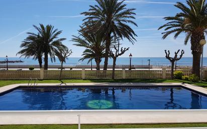 PLANTA BAJA FRONTAL MAR EN 1ª LÍNEA DEL MARITIM - CUBELLES. Bonito apartamento con vistas frontales a mar. Tiene una superficie construida de 70 m² y 48,93m2 útiles. Distribuido en pasillo, 1 habitación doble, 1 baño completo con bañera, cocina abierta con armarios altos y bajos. Comedor amplio con salida a terraza de 7,83m2 con vistas a mar. Equipado con armario empotrado en dormitorio, calentador eléctrico, suelo de gres y muebles y electrodomésticos existentes. En el conjunto residencial hay piscina comunitaria. Incluye una plaza de parking para coche pequeño o moto (ubicada en un edificio próximo a la comunidad). El complejo se encuentra cerca la estación de tren y comercios de la zona. Año construcción 1983. Orientación sur. REF.04109.