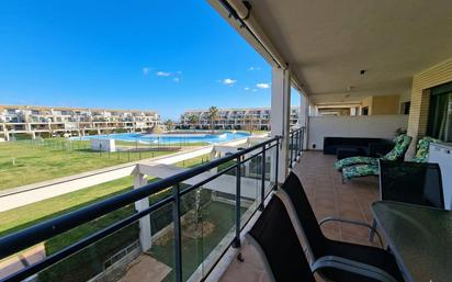 Precioso apartamento ubicado en Golfmar, una de las urbanizaciones más valoradas de Panorámica Golf (Sant Jordi). Si buscas luz, tranquilidad y una terraza espectacular… esta vivienda te encantará. Terraza de 32,5 m2 orientada al este con vistas abiertas: La auténtica protagonista es su impresionante terraza con vistas al jardín central y a la piscina. Un espacio amplio y perfectamente distribuido en: - Zona de comedor con mesa de cristal - Zona chill out con tumbonas y sofás de exterior - 5 toldos con doble posición (privacidad total si lo deseas) Un verdadero lujo para disfrutar del clima mediterráneo durante todo el año. Vivienda luminosa y totalmente exterior: Ubicada en primera planta con ascensor, el apartamento (año de construcción 2011) es completamente exterior, excepto los baños, lo que garantiza ventilación y luz natural en todas las estancias. Se distribuye en: - Amplio salón-comedor con estufa de pellets y acceso directo a la terraza - Cocina independiente, totalmente equipada y reformada recientemente - Habitación individual con armario empotrado y salida a la terraza - Habitación doble en suite con armario empotrado, baño con bañera y acceso a la terraza - Segundo baño completo con ducha Equipamiento y extras: - Aire acondicionado y calefacción por conductos en toda la vivienda - Ventanas de aluminio con doble acristalamiento tipo Climalit - Calentador eléctrico de doble resistencia instantánea - Incluye plaza de parking y trastero Urbanización Premium con completas zonas comunes: La urbanización está totalmente vallada y el complejo dispone de seguridad 24/7. Disfrutarás de: - 2 piscinas (una abierta todo el año) - Bar y zona de ocio en verano - 2 pistas de tenis - 3 pistas de pádel - Pista multiusos de baloncesto y fútbol - Parque infantil - Amplias zonas verdes y paseos peatonales Un entorno ideal tanto como residencia habitual, segunda vivienda o inversión. Ubicación estratégica: Zona tranquila y segura, perfecta para familias o para quienes buscan desconectar sin renunciar a servicios. A solo 10 minutos en coche de las playas de Vinaròs. Aeropuertos cercanos: Castellón de la Plana y Reus, a aproximadamente 45 minutos. Una vivienda muy completa, con gran terraza, excelentes instalaciones y lista para entrar a vivir. ¡Ven a visitarla, te enamorarás!
