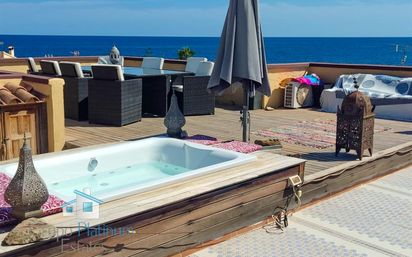 No deje pasar esta oportunidad y llame ahora al +34950466112 para concertar una visita. Este exclusivo apartamento combina lujo, comodidad y una ubicación inigualable frente al mar. Gracias a las vistas frontales al mar, podrá disfrutar cada día de un panorama impresionante y del relajante sonido de las olas. La vivienda cuenta con cinco amplios dormitorios y nada menos que tres elegantes cuartos de baño, acabados con materiales de alta calidad y gran atención al detalle. La zona de estar es luminosa y espaciosa, con acceso directo a una preciosa terraza donde el interior y el exterior se funden a la perfección. El dormitorio principal también ofrece acceso a una terraza privada, ideal para disfrutar de las vistas con total tranquilidad. El apartamento cuenta con una cocina totalmente equipada de lujo, calefacción por suelo radiante en las estancias principales y aire acondicionado, lo que garantiza un confort óptimo en cualquier época del año. Los materiales y electrodomésticos utilizados son de primera calidad y resaltan el carácter lujoso de la vivienda. En principio, la vivienda se vende sin amueblar, pero si los muebles son de su agrado, se puede negociar su inclusión. Situada a solo 100 metros de la playa y dentro de una urbanización bien cuidada con piscina comunitaria, esta propiedad ofrece todo lo necesario para un estilo de vida relajado junto al mar. Como guinda del pastel, el apartamento cuenta con una impresionante terraza en la azotea con vistas de 180 grados. Aquí encontrará un espacio exterior totalmente equipado con barbacoa, jacuzzi y una acogedora iluminación LED tenue.