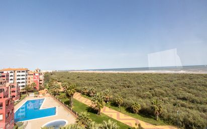 Le presentamos este impresionante ático en la exclusiva urbanización Las Palmeras, estratégicamente ubicada entre Isla Canela y Punta del Moral. Con 126 m² construidos y 153 m² de terrazas privadas, este inmueble combina elegancia, comodidad y unas vistas al mar inigualables. Consta de tres dormitorios con armarios empotrados, dos baños modernos, cocina equipada y un salón muy luminoso. Se vende amueblado y cuenta con aire acondicionado en todas las estancias. Incluye una plaza de garaje y un trastero, con posibilidad de adquirir una plaza adicional. La urbanización dispone de piscina, jardines cuidados y una localización inmejorable junto a la playa y el puerto deportivo. Una oportunidad excepcional para vivir o vacacionar en la Costa de la Luz.