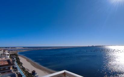 Imagina despertar a solo 20 metros de la playa, donde el aroma a sal y brisa marina acarician tus sentidos cada mañana. La vivienda con las mejores vistas, la mejor orientación y la mejor aireación de todo el pueblo. Y esque además de ser el piso más alto del edificio más alto, tiene triple orientación: ventanas al este para despertar con la salida del sol, ventanas al sur para ver las vistas panorámicas del Mar Menor y ventanas al oeste para disfrutar de las puestas de sol. Tienes dormitorio principal para escoger: - O el más amplio con vistas al Mar Menor, Las Salinas y el Molino. - O el dormitorio que tiene baño en suite. Y esque en esta vivienda además de 2 dormitorios, tienes 2 baños: - Uno completo con bañera y ventana al exterior. - Uno con plato de ducha, y ventilación por el shunt del edificio. La cocina, ese punto tan importante de un hogar. Es amplia, con mucho almacenaje en forma de U. Y el salón con dos zonas: el comedor y la zona de sofás. Y si sales a la terraza te vas a enamorar del todo, porque ahí, en esa terraza de esquina, las vistas son pura magia. Además, de forma opcional, hay disponible un aparcamiento cerrado a una calle de distancia. Solo hay un piso más alto del edificio más alto, en la esquina del amanecer y con triple orientación. Solo hay una oportunidad de que sea tuyo. ¿Será tu hogar? Comunidad vivienda: 586 € anuales IBI vivienda: 260,50 € IBI garaje: 30,21 € En 2021 se revisaron todos los pilares internos del edificio, se cambiaron los forjados y alicatados de los balcones, y también se renovó la pintura externa del edificio.