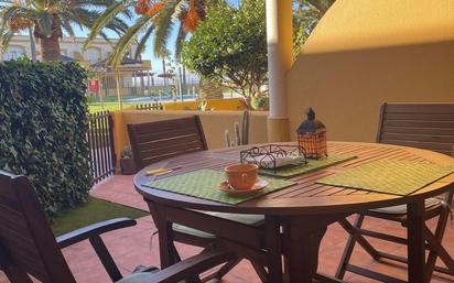 Apartamento en planta baja en primera línea de playa. Urbanización con jardín y piscina. Tiene una superficie de 75m2 y se compone de dos dormitorios, cocina, salón, baño y amplia terraza. Garaje opcional.