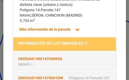 Vendo terreno rustico con urbano: - Rustico 5753 m2. - Urbano 65 m2. -Terreno esta en Chinchón ( Madrid ), en la carretera M 305, sobre Km. 20, bajando desde la carretera 30 m. Parcela 147 / Polígono 14 Chinchón Se vende por 15 euro / m2. algo negociable, también se escucha ofertas, Terreno: -NO VALLADO. -NO LUZ. -NO AGUA.