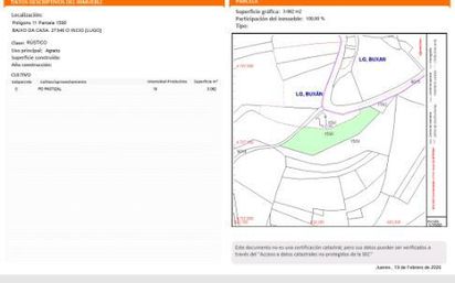 Esta a pie de carretera, a escasos metros del Museo da Pedra. Este terreno se puede cambiar su situación en el Ayuntamiento de O INCIO ya que dispone de poste de luz cerca y está en plena Carretera! Solo dispongo de los datos catastrales, ya que llevamos muchos años sin ir por allí. A FONTELA ( 1219 m/2)y A PENELA (1236 m/2) ambas tienen acceso de Tierra y con Árboles de todo tipo. A escasos metros del Museo de Pedra, cerca de BAIXO DA CASA.. . todas las fincas están cercanas a la casa familiar da CASANOVA Quería poner las 3 juntas, pero como no me deja por prueba de anuncios, lo comento aquí y se adjuntan las Imágenes Catastrales. *****El precio es de BAIXO DA CASA, A FONTELA Y A PENELA serían 2500 € cada una *****.