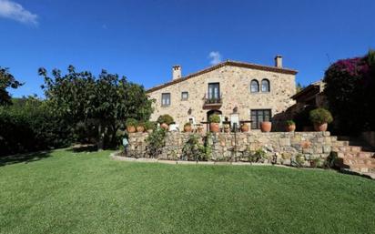 Santa Cristina d’Aro – Zona Centro. En una de las mejores zonas residenciales de la Costa Brava central encontramos esta exclusiva finca de estilo masía, que conserva todo el encanto catalán y mediterráneo, con paredes de piedra originales y techos con vigas de madera. Es una vivienda que por sus características, resulta muy confortable y gracias a sus numerosas aperturas, ofrece una gran luminosidad en todas las estancias. Al acceder a la vivienda, encontramos un amplio recibidor que distribuye la planta baja en dos zonas diferenciadas. A la derecha, un acogedor salón con una gran chimenea. A la izquierda, un baño completo, un dormitorio individual, la zona de lavandería y una cocina con comedor que tiene salida directa a una terraza. Esta terraza comunica con el jardín, un espacio ideal para disfrutar de estancias al aire libre. En la planta superior, un pequeño salón distribuidor da paso a tres amplios dormitorios dobles, cada uno con su baño privado. El dormitorio principal, tipo suite, cuenta además con una zona de vestidor. Entre su equipamiento destacan el aire acondicionado y la calefacción mediante splits con bomba de frío y calor, calefacción por radiadores, suelos de gres y carpintería de madera con doble acristalamiento, que garantizan el confort térmico durante todo el año. El jardín dispone de una amplia zona de aparcamiento cubierta para varios vehículos y una rampa de acceso. La propiedad se compone de la parcela donde se ubica la masía, con una superficie de 414 m², y se complementa con dos parcelas urbanas contiguas de 833 m² y 889 m², todas incluidas dentro del mismo precio de venta. La población de Santa Cristina d’Aro se encuentra situada a 10 minutos de las principales poblaciones y playas de la Costa Brava central: Sant Feliu de Guíxols, Castell-Platja d’Aro y S’Agaró; a 30 minutos del aeropuerto de Girona-Costa Brava; a 35 minutos de la estación del tren AVE en Girona, y a 60 minutos de Barcelona. En la zona hay importantes instalaciones deportivas para la práctica del golf, la hípica, BTT, senderismo y actividades náuticas, además de una destacada oferta cultural y gastronómica.