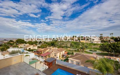 Exclusiva villa de lujo en Los Balcones con inmejorable ubicación y vistas espectacules, construida en 2008, con un total de 900 m2 en 4 niveles sobre una parcela de 800 m2. Se compone de un total de 7 dormitorios, 7 baños (de ellos 3 en suite), 2 cocinas de alta gama, gran salón con ventanales panorámicos. Piscina exterior de 200 m2, y piscina interior con jacuzzi de agua salada, billar, zonas de trabajo, garaje para 8 coches. Construida con paredes de 65 cm, calefacción por suelo radiante, aspiración central, cámaras de seguridad y persianas automáticas antirrobo. Cada detalle pensado para el máximo confort y estilo de vida exclusivo. Se vende parcialmente amueblada. Los Balcones, situado en Torrevieja, es una zona residencial muy valorada por sus calles tranquilas, modernas villas y excelentes servicios. Cerca de colegios, comercios y la costa, ofrece impresionantes vistas al mar y un entorno seguro y familiar.