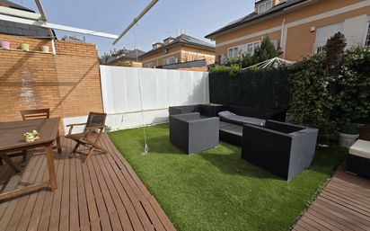 Año construcción 2005 Superficie construida 240 mc Superficie útil 230 mc Parcela de 250 mc Orientación norte, este, oeste. Dividido en 3 plantas. Tres dormitorios, dos baños completos, 1 aseo, gran salón comedor de 40 m2, amplia cocina equipada y amueblada con salida directa a la terraza. Buhardilla diáfana muy luminosa, con espacios divididos. Chalet muy luminoso, garaje, trastero, piscina de agua salada, zonas ajardinadas preparadas para relax, puerta automática. Ventanas pvc, armarios empotrados de gran capacidad, vestidor en dormitorio principal, aire acondicionado en todas las estancias, chimenea, calefacción gas natural. Suelos de tarima, cerámicos y gres, todas las habitaciones con balcón, mucha luminosidad . Posibilidad de construir otro dormitorio en la planta baja. Zonas de comedor exterior en la parte delantera y trasera. Rodeado de absolutamente todos los servicios, siendo ubicado en una de las mejores zonas residenciales de Rivas. ¡¡LLÁMANOS PARA MÁS INFORMACIÓN E IR A VISITARLO!!