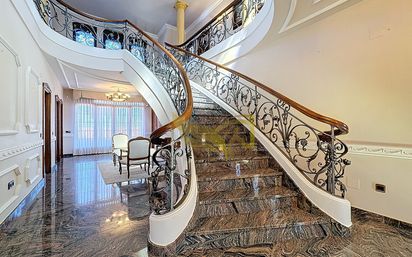Homes by Pegasus presenta este exclusivo chalet independiente en Avenida de las Artes, Aranjuez, una propiedad verdaderamente única que combina arquitectura señorial, dimensiones extraordinarias y materiales nobles en una de las zonas residenciales más distinguidas del municipio. Una residencia pensada para quienes valoran la elegancia clásica, la amplitud sin límites y la privacidad absoluta, todo ello sobre una generosa parcela que refuerza su carácter exclusivo. Con 669 m² construidos sobre una parcela de 896 m², esta vivienda se distribuye en dos plantas principales que han sido concebidas para ofrecer comodidad, representatividad y una experiencia residencial de alto nivel. La propiedad alberga 8 habitaciones amplias y completamente equipadas, perfectamente adaptables tanto a una gran familia como a quienes desean combinar zonas privadas con despachos, salas de invitados o espacios polivalentes. Dispone además de 5 baños completos, estratégicamente distribuidos para garantizar funcionalidad y confort en el día a día. Desde el primer instante, la vivienda impresiona. El acceso conduce a un hall de entrada de gran presencia, donde una escalera majestuosa con materiales de alta calidad y vigas de mármol se convierte en el eje visual de la casa. Este elemento arquitectónico no solo articula la comunicación entre plantas, sino que define el estilo señorial de la propiedad. Los suelos pulidos de mármol, presentes en las principales estancias, aportan continuidad, luminosidad y una estética atemporal que eleva cada espacio. La zona de día ha sido diseñada para disfrutar y recibir. El salón principal, de dimensiones excepcionales, permite crear distintos ambientes dentro de un mismo espacio: zona de estar, área de lectura o incluso rincón de reuniones sociales. El comedor independiente, amplio y elegante, invita a celebraciones formales y encuentros familiares en un entorno sofisticado. La cocina, espaciosa y perfectamente organizada, cuenta con lavadero integrado, combinando practicidad y capacidad de almacenamiento con un diseño acorde al resto de la vivienda. Uno de los rasgos más sobresalientes de esta propiedad es su extraordinaria luminosidad. Con aproximadamente 15 ventanas por planta, la casa disfruta de una entrada constante de luz natural durante todo el día, generando una atmósfera cálida y realzando la nobleza de sus materiales. Esta abundancia de luz potencia la sensación de amplitud y convierte cada estancia en un espacio abierto y acogedor. La planta inferior añade un valor diferencial excepcional. Además de un amplio trastero, la vivienda dispone de una impresionante zona de garaje con capacidad para hasta 10 vehículos en el interior, una característica poco común incluso en propiedades de alta gama. Este espacio ofrece versatilidad adicional, pudiendo adaptarse a colección privada de vehículos, zona de almacenamiento o área multifuncional según las necesidades del propietario. El exterior, con 896 m² de parcela, refuerza la esencia señorial del conjunto. La propiedad cuenta con un cenador techado junto a la zona de barbacoa, creando un entorno perfecto para celebraciones al aire libre, reuniones familiares o momentos de descanso en total privacidad. El jardín ofrece múltiples posibilidades de paisajismo o incorporación de nuevos elementos de ocio, consolidando la vivienda como una residencia integral pensada para disfrutar tanto del interior como del exterior. Ubicado en una de las avenidas más representativas de Aranjuez, este chalet independiente combina tranquilidad residencial con proximidad a todos los servicios esenciales, colegios, zonas verdes y conexiones cómodas con el centro urbano. Su singularidad arquitectónica, su tamaño, la calidad de sus acabados y su capacidad de adaptación lo convierten en una propiedad difícilmente comparable dentro del mercado actual.