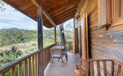 Estudi 23 les presenta EN EXCLUSIVA este chalet a 4 vientos de estilo nórdico, mezclando piedra y madera en su exterior. Construida sobre unas vigas de hormigón de alta resistencia, que la elevan del suelo en su parte inferior protegiéndola de humedades y inclemencias, así como proporcionando un espacio libre para resguardo de vehículos o almacenamientos. Situada en una finca de casi 600m² que acompaña el estilo rustico de la casa con un muro de rocalla natural equilibrando las tierras para concebir una zona totalmente transitable y cómoda en un entorno lleno de vegetación. La parcela permite la entrada a su garaje para un vehículo. En su interior encontramos dos plantas más un sótano exterior con zona de despensa o lavandería. En la primera planta. Distribuida en recibidor, sala de estar con salida a terraza, comedor, cocina integral, baño completo y tres habitaciones en diferentes alturas. En la segunda planta se encuentra una habitación doble con balcón y baño completo e hidromasaje. Una habitación de dimensiones reducidas como vestidor, bodega o armario. Habitación de desembarco de la escalera muy amplia, actualmente utilizado como sala de ocio y deporte más un gran armario empotrado. Todas las estancias tienen salida al exterior con cerramiento de altísima calidad en madera recién instalados. Climatizadores fríos/calor Mitsubishi. Suelos de parquet auténtico y porcelánicos. Chimenea de leña encastrada de forja y cristal. Muchos puntos de almacenamiento por toda la casa. Vistas a todos los parques naturales de la zona como el montnegre, turó del home, Montseny, corredor ... A 8 minutos del pueblo de Arenys de Munt, donde se encuentran los comercios habituales y los artesanales así como variedad de restaurantes y actividades. Si buscas la tranquilidad de una casa elegante, funcional y para entrar al vivir, en una urbanización en plena naturaleza, a 15 minutos de la playa y a tan solo 35 minutos de Barcelona no lo dudes que es la mejor opción. Te esperamos.
