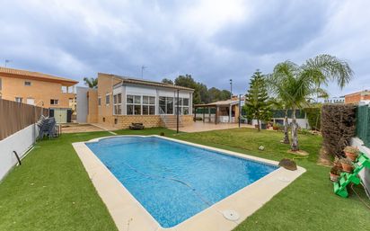 Chalet con piscina, parcela de 800 m² y gran garaje en Albalat dels Tarongers (Valencia). Si buscas espacio, privacidad y piscina propia, este chalet lo tiene todo. Parcela de 800 m², gran garaje y una vivienda cómoda en una sola planta, ideal para disfrutar desde el primer día. Descubre este chalet independiente en Albalat dels Tarongers con gran parcela, piscina y espacios pensados para disfrutar desde el primer día. Ubicado en una zona tranquila y rodeada de naturaleza, con excelente conexión a Sagunto, Puerto de Sagunto y Valencia, es una opción perfecta tanto como vivienda habitual como segunda residencia. La vivienda se ubica en una parcela de aproximadamente 800 m² con espacios exteriores muy bien aprovechados: piscina privada, zonas ajardinadas y una amplia terraza junto a la vivienda, ideal para comidas y reuniones al aire libre. Además, cuenta con una zona cubierta de cocina exterior equipada con barbacoa y horno de leña, perfecta para disfrutar con familia y amigos durante todo el año. La vivienda principal se distribuye en una sola planta, lo que aporta una gran comodidad en el día a día. Dispone de un amplio salón-comedor muy luminoso, con salida directa a la terraza, creando una conexión perfecta entre interior y exterior. La cocina es independiente, funcional y totalmente equipada, con acceso a una práctica zona de lavandería. En la zona de descanso encontramos 4 dormitorios, todos ellos con buena iluminación natural y ventilación. El dormitorio principal dispone de baño en suite y vestidor, aportando mayor comodidad y privacidad. La vivienda cuenta además con un segundo baño completo que da servicio al resto de habitaciones. Uno de los grandes valores de esta propiedad es su gran garaje en sótano de más de 120 m², un espacio diáfano con capacidad para varios vehículos y múltiples usos: gimnasio, sala de ocio, zona de trabajo o almacenamiento. En cuanto a calidades, la vivienda cuenta con suelo de parquet, 3 equipos de aire acondicionado tipo split frío/calor, calefacción mediante radiadores eléctricos, trastero, descalcificador y placas solares, lo que mejora la eficiencia y el confort del hogar. Su orientación Oeste/Sur garantiza una excelente entrada de luz natural durante todo el día. La vivienda destaca por su luminosidad, su buena distribución y sus amplios espacios tanto interiores como exteriores. Ubicada en un entorno natural privilegiado, permite disfrutar de la tranquilidad con una excelente conexión a Valencia y alrededores. Ideal para familias, para quienes teletrabajan o para quienes buscan una vivienda con parcela, piscina y espacio extra. Certificado energético en trámite. Contacta con nosotros para más información o concertar una visita. REF: 4673.